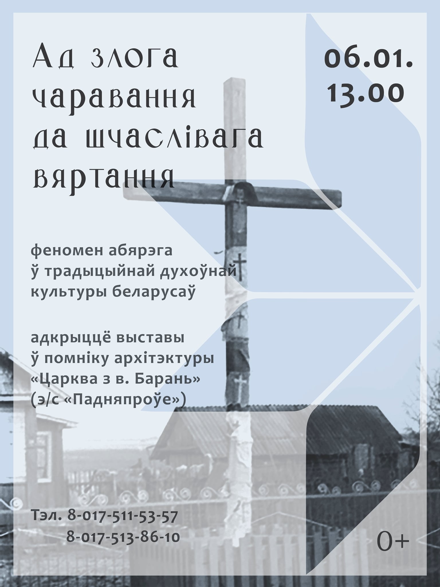 Выставка посвящена такому феномену белорусской духовной культуры как оберег. Обереги существовали в традиционной культуре со времен глубокой древности и всегда были интересным и ценным источником для этнографов, так как являлись своеобразными ключами для открытия и понимания архаичной картины мира, системы представлений и верований белорусов. Обычные вещи из культурной или природной среды в контексте традиционного мировоззрения приобретали новый семантический смысл и использовались в качестве апотропеев – средств защиты от воздействия сверхъестественных сил. Во время выполнения оборонительной функции эти предметы лишались своего утилитарного назначения, приобретали свойства ритуальные, символические. Новые, апотропейные характеристики при этом не случайны, они опирались на реальные качества предметов, либо на особенности их практического использования. Например, в народном сознании острота ножа или топора в одинаковой степени полезна как для выполнения реальных, бытовых задач, так и для служения в качестве средства защиты от ведьм.