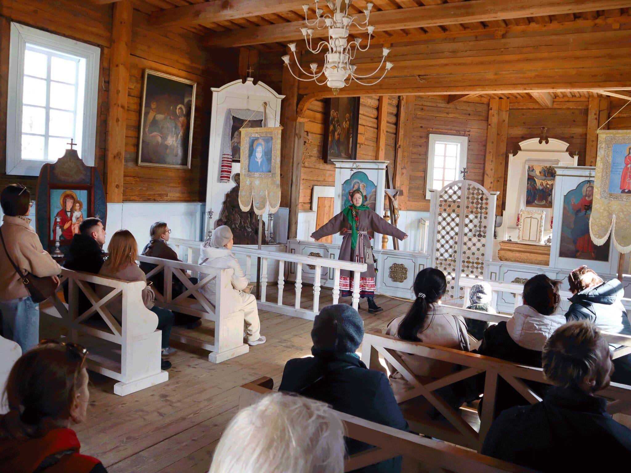 С 14:00 до 15:00 мы погрузились в неповторимую атмосферу белорусской глубинки. Экскурсия по памятникам деревянной архитектуры превратилась в настоящее путешествие во времени. Мы не просто смотрели на здания — мы чувствовали дыхание прошлых веков, прикасались к истории, которая живет в каждом бревне старинных домов.